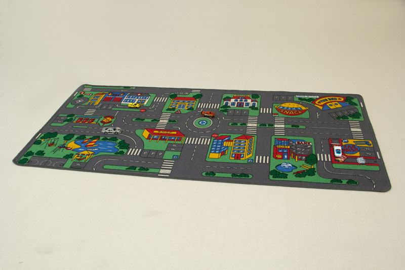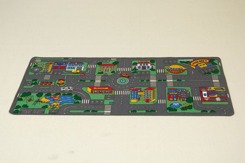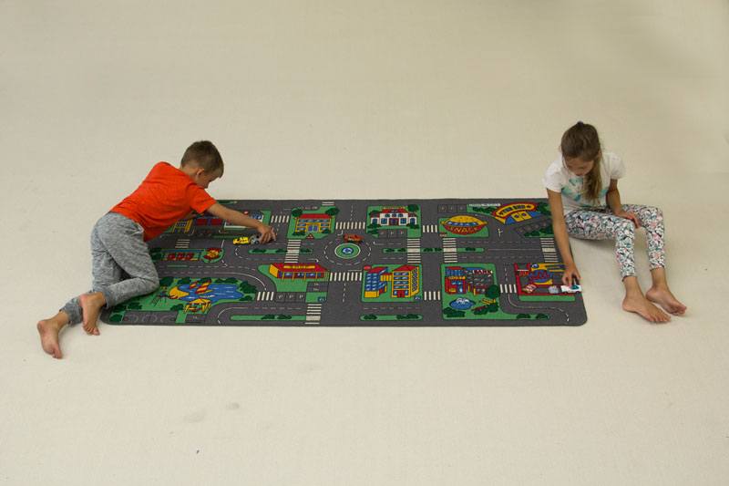 A true classic, this traffic mat. Travel here, there everywhere via the playful roadway. Wind your way through the rotary and 1-2 way traffic, all around the town. This Play Mat has everything! From shops to a car wash to a bank and school. This Play Mat is like a real town. This rug is ideal to play with a lot of cars. As shown in the picture this rug has a large road network. In brief many and many hours of fun guaranteed!