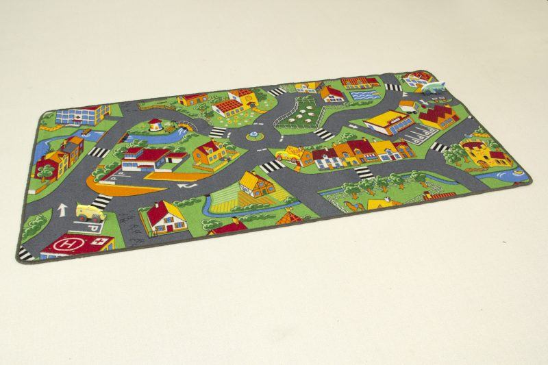 This Play Mat has everything! From a castle to a residential area from a hospital to a small farm. This Play Mat is like a real town with shops, fields and a river. Go to church, visit the castle or visit the horses in the field. Travel here, there everywhere via the playful roadway. Wind your way through the rotary all around the town. This Play Mat is characterized by wide roads so that it can be driven with cars and tractors.In brief many and many hours of fun guaranteed!