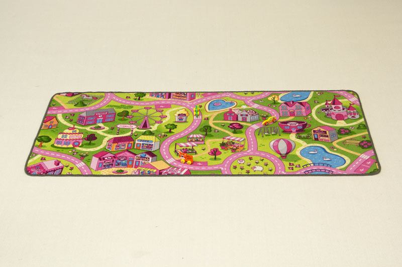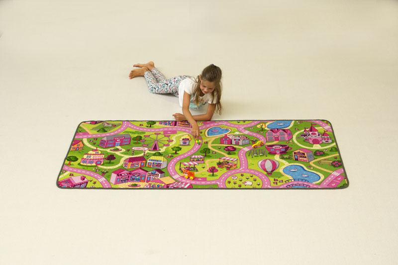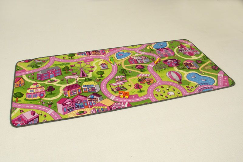 This is one of the few Play Mats aimed for girls. This Play Mat is characterized by a warm cozy appearance. This mat is ideal to play with by example dolls. As shown in the picture this mat has winding paths where you can stroll about with friends. It looks like a park with lots of cozy tents. In brief many and many hours of fun guaranteed!